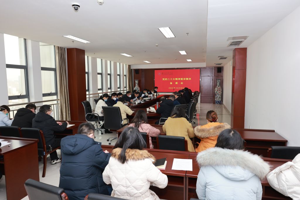 校党委宣传部部长陈建龙首先传达了上级关于深入学习宣传贯彻党的二十大精神的有关文件精神,强调要全面准确把握学习宣传贯彻党的二十大精神的重大意义,推动党的二十大精神入脑入心、落实落地。