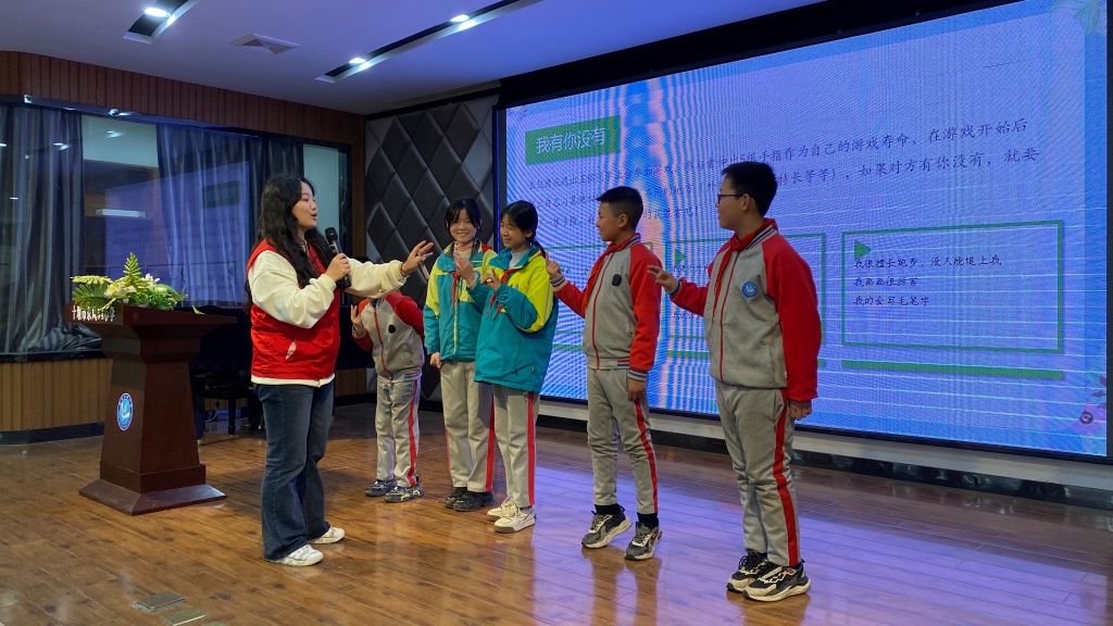 本次辅导课以数鸭子的暖场小游戏开始,小学生们现场积极参与,气氛很快活跃起来。接下来志愿者覃梦园开始了心理健康辅导课,她通过做游戏、讲故事、看视频、提问互动等多种方式引导小学生们如何正确认识自我,自己有哪些长处,她告诉大家,每个人在世界上都是独一无二的,我们应该无条件的接纳自我,乐观积极地面对自己。在早恋的问题上,她用心理学知识告诉小朋友,这是青春期再正常不过的事情,我们应该正确看待它,但是因为这个阶段生理心理还不成熟,不应该去发展它,而是应该将精力放在学习上,在正确的时间段做正确的事,以后才不会后悔。后面她还给小朋友们讲了如何提高学习专注力的问题,并给出了很多小建议。