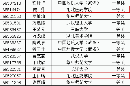 省赛一等奖暨国赛入围名单