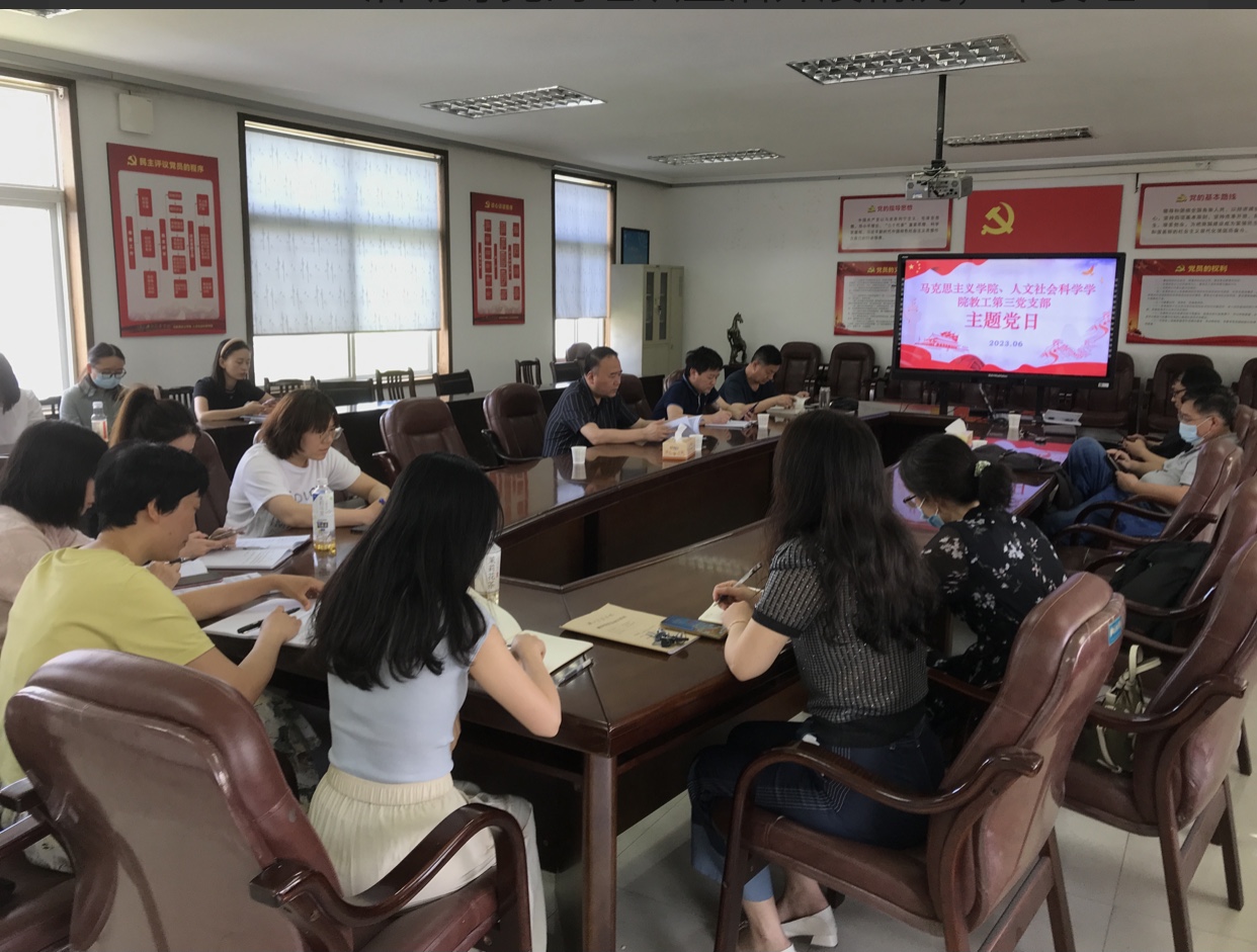 活动伊始,在完成缴纳党费、奏唱国歌、重温入党誓词及党员政治生日之后,何承全老师领学《党章》部分章节。随后在共同学习及分领域学习环节,分别由李君君老师和安湘君老师领学“习近平总书记在听取陕西省委、省政府工作汇报时的重要讲话精神”、“习近平总书记关于安全生产工作的重要论述”、“全省深化党员干部下基层察民情解民忧暖民心实践活动工作推进会议精神”等文件。学习感想分享中,徐娜老师指出融入思政元素也是对学生三观的塑造,应以党员身份正面影响学生的人生观念。吴桐老师表示作为教师和党员的双重身份,更应该对自己保持高要求,并践行为人民服务的宗旨,同时平衡好工作和生活。