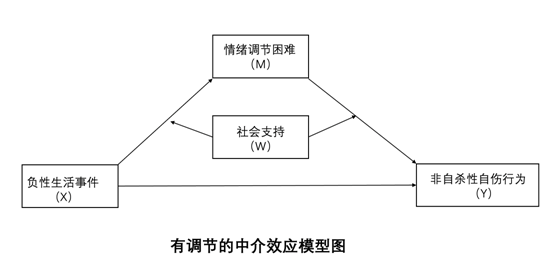 综上所述,该研究基于NSSI的“体验-回避模型”、“整合模型”和“社会支持的缓冲模型”,构建了一个有调节的中介模型,在考察负性生活事件对大学生NSSI直接影响的基础上,进一步探究情绪调节困难的中介作用和社会支持的调节作用。