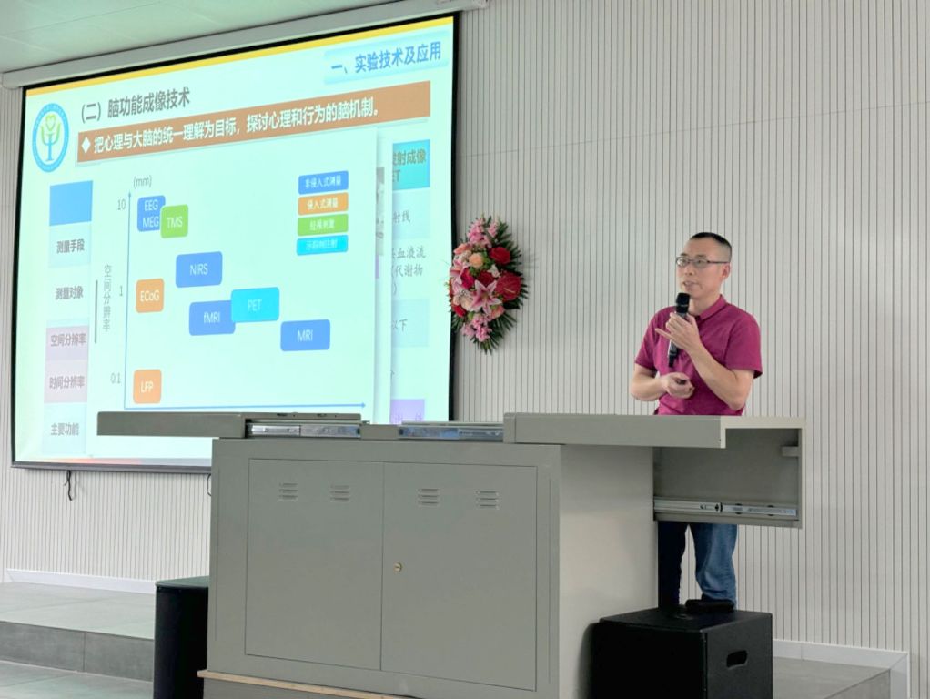 曾祥炎老师首先讲授了最新的认知神经科学研究技术的进展和实际应用,重点介绍了脑磁图、功能性核磁共振成像、近红外成像、脑电图等脑成像技术在心理学、语言学和运动科学中的应用。同时,他还分享了神经调控技术,如经颅磁等在心理疾病治疗和诊断方面的优势。然后,曾老师还用实际案例展示了传统认知心理实验技术在现代社会中的应用,如眼动技术在电梯轿厢设计、报纸版面设计等方面独特价值。