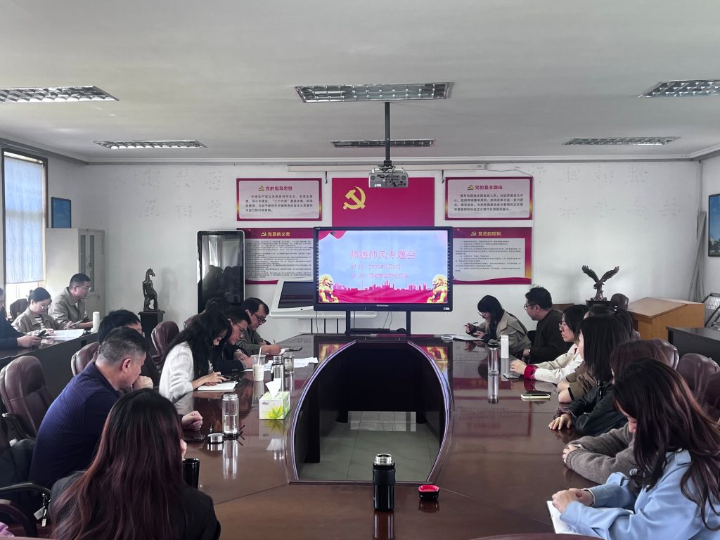 在会上,学院全体党员共同学习了《中华人民共和国教师法》重点章节、《新时代高校教师职业行为十项准则》《教育部关于高校教师师德失范行为处理的指导意见》,通过深入剖析高校教师违反师德师风典型案例,进一步强化师德师风的重要意义和时代要求。