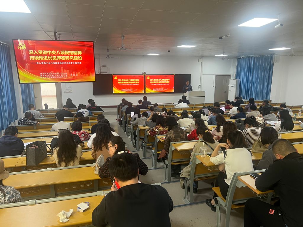 孔祥清以《深入贯彻中央八项规定精神 持续推进优良师德师风建设》为题,为全体党员梳理党的十八大以来历次党内集中教育情况。他带领同志们原汁原味学习中央八项规定精神及实施细则,深刻领悟精神实质与实践要求;密切结合新时代高校教师职业行为准则规定,引导教职工持续推进优良师德师风建设;通过深刻汲取典型案例教训,推动学院学习教育“学、查、改”取得实效。