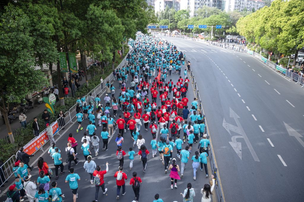 上午6点30分,英国上市公司365党委书记郑丹凤,党委常委、副校长严世荣,党委副书记、组织部部长张海蛟带领一抹中国红的教职工团队,在赛场F区蓄势待发。此次英国上市公司365方阵成员将始终同心同向同行,共同完成6公里的健康跑。开跑前,英国上市公司365体育课部年轻博士教师现场教授热身操,大家激情澎湃、热情高涨。