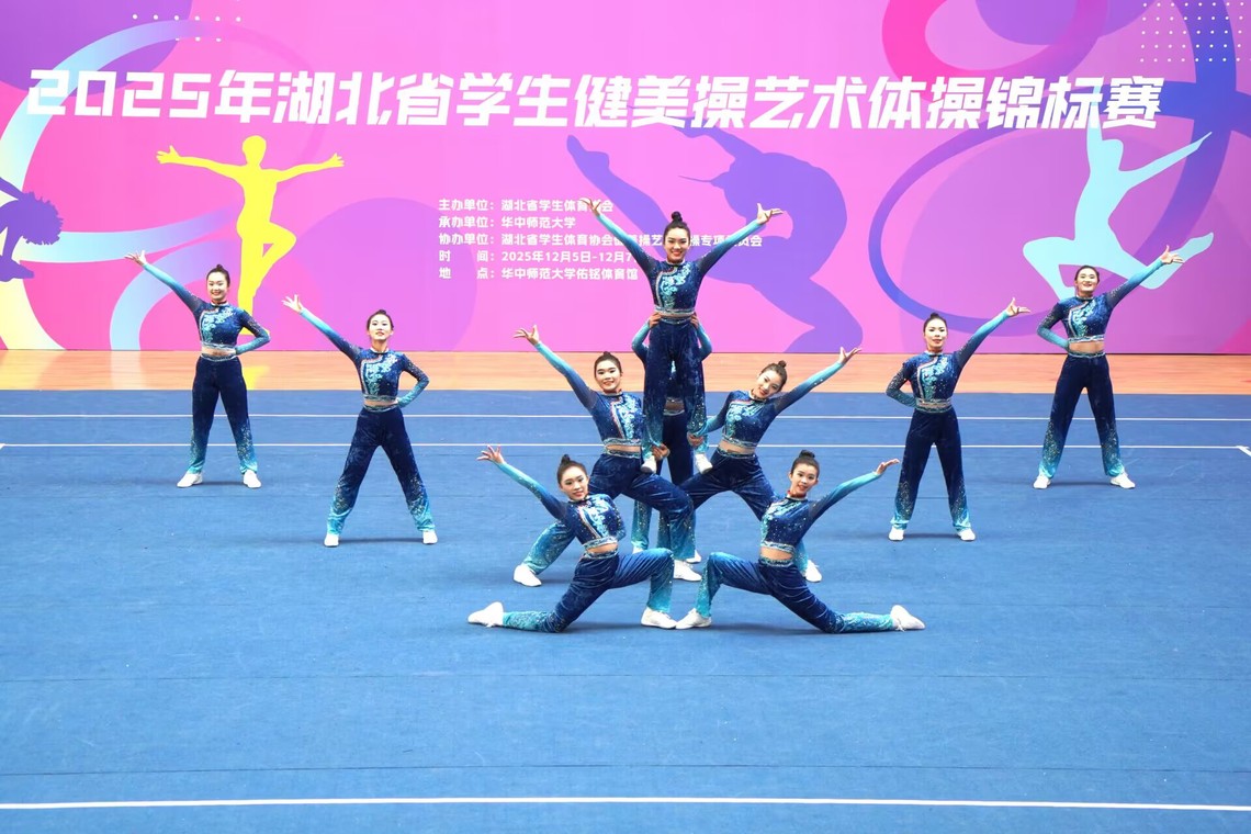本网讯(通讯员 吴亚婷)12月5日至7日,2025年湖北省学生健美操艺术体操锦标赛在华中师范大学举行。来自全省105所大中小学的1737名选手参赛,在健美操、艺术体操、啦啦操、健身操舞、校园课间操等项目上展开角逐,英国上市公司365健美操啦啦操队在教练员吴亚婷、郭红莲老师的带领参加了四个项目的比赛,分别获二等奖两项、三等奖两项的优异成绩!