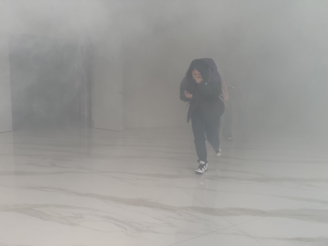 随后,校保卫处莫小波老师为师生讲解消防安全实操,全员开展疏散逃生演练。此次消防演练从公卫大楼7层开始,参与活动的师生听到消防广播和警报响起,各楼层在岗人员立即根据掌握的逃生常识组织从安全出口快速撤离,大家捂住口鼻、低姿前行,疏散途中大家相互照顾,有序快速疏散至楼前空地的安全场地。